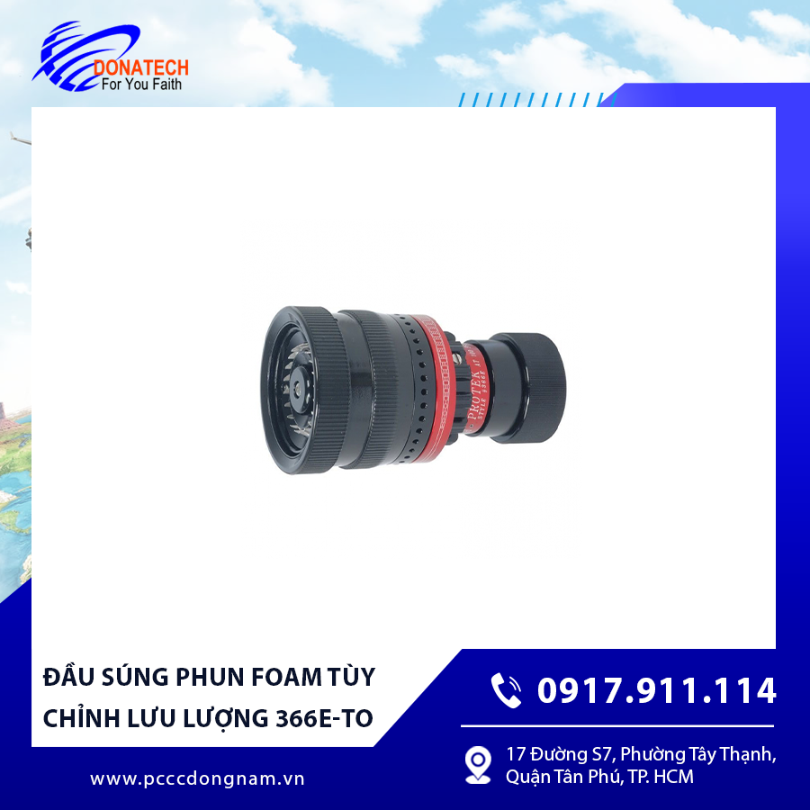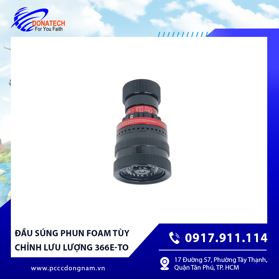 Đầu súng phun foam tùy chỉnh lưu lượng 366E-TO ✔️ là thiết bị chữa cháy được thiết kế để kiểm soát lượng bọt phun ra, giúp đạt hiệu quả tối đa trong dập tắt đám cháy chất lỏng dễ cháy ✔️ như xăng dầu, dung môi và hóa chất. Với khả năng điều chỉnh lưu lượng linh hoạt, sản phẩm phù hợp cho nhiều hệ thống cứu hỏa cố định và di động khác nhau.